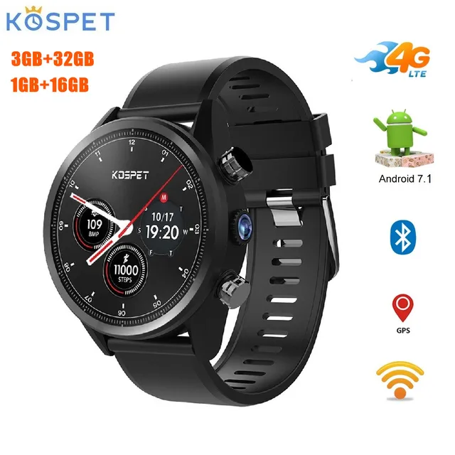 Kospet Optimus Pro Dual System 4G Smartwatch Android 7.1 Sports 8.0MP Camera 3GB RAM 32GB ROM Smart Watch 800mAh WiFi GPS